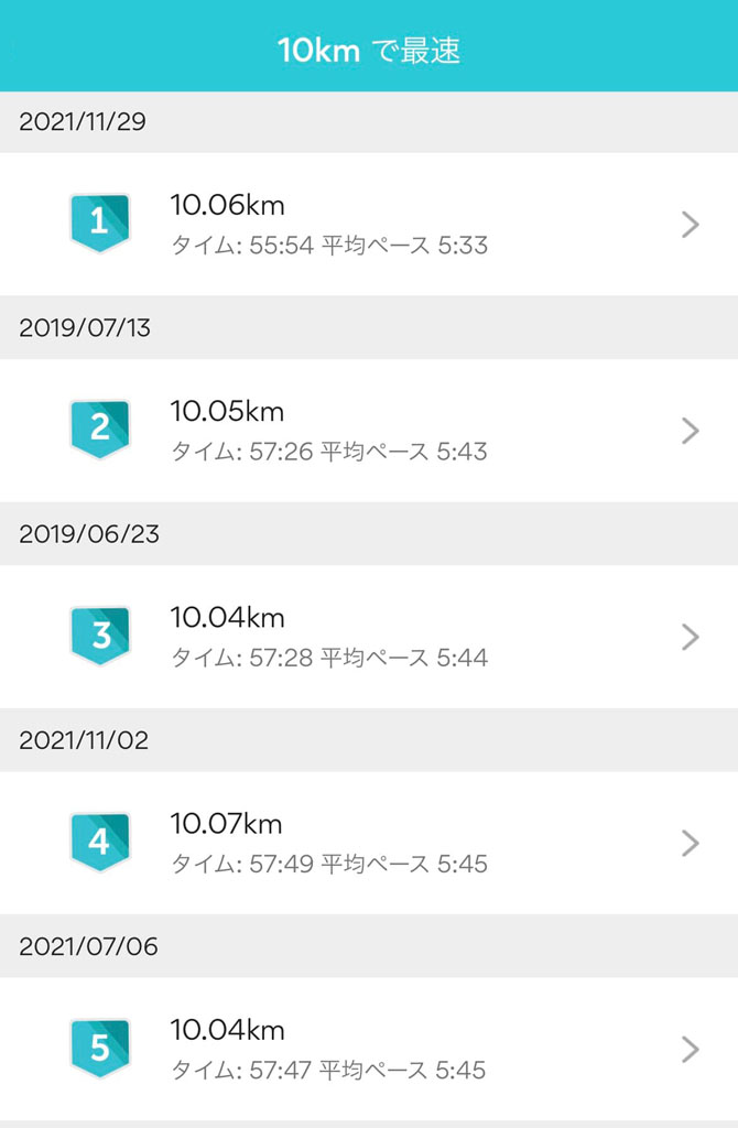 しかも、5分33秒/kmと、長い間切れなかった40秒の壁を越えられた。最後は足が動かなくなったが、気持ち良く10kmを走り切れた。