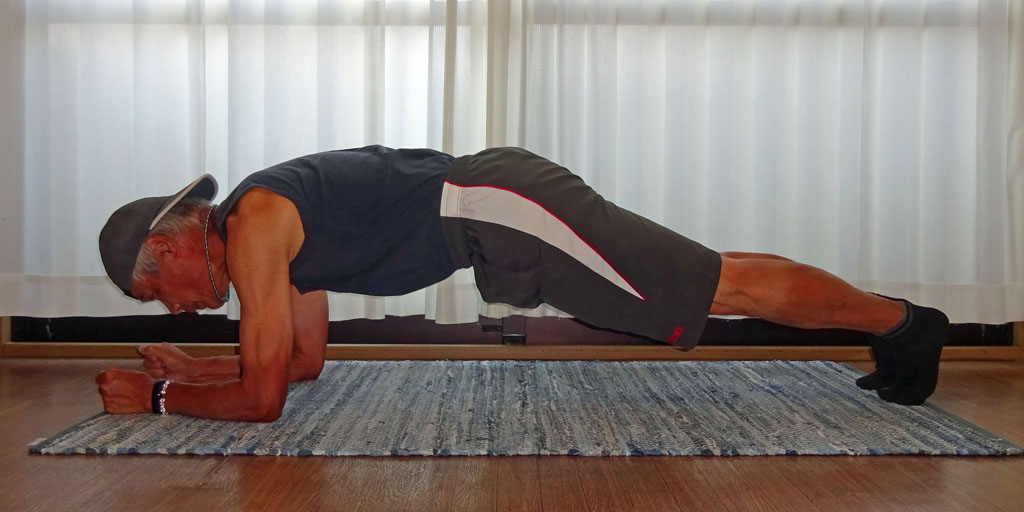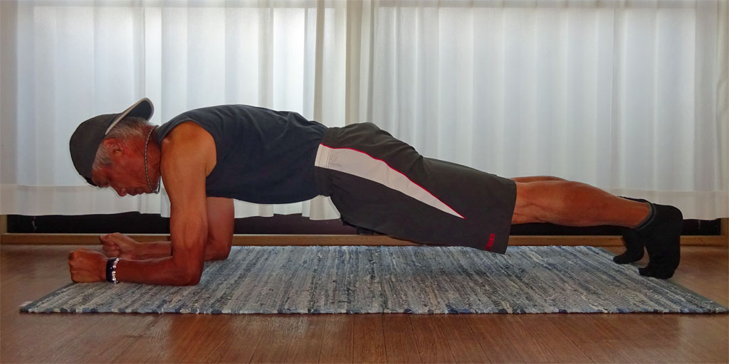 体幹トレーニングの代表格。うつ伏せの状態で、前腕から肘、つま先を床につけ、体を浮かせるトレーニング。腹筋やインナーマッスルを鍛えられ、良く知られる上体起こしの腹筋運動と異なり腰痛のリスクが少ない。
