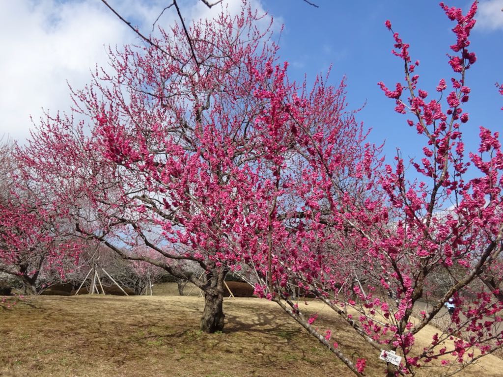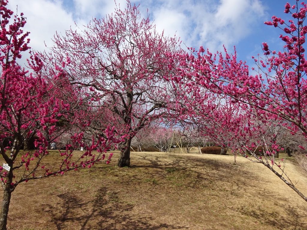 ちょっと寒の戻りがあったものの、暖かい日が続き梅園全体が華やかに色づいた。