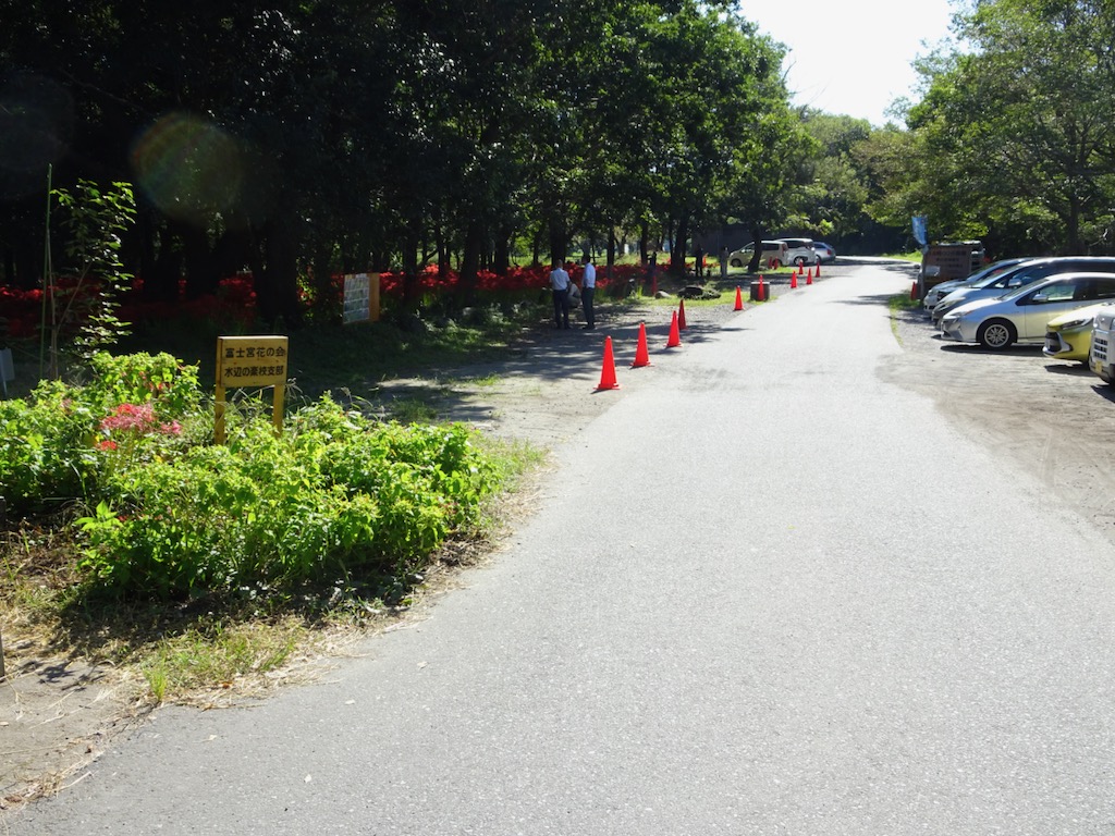 駐車場に到着した9時過ぎには、先着の車はまだ2台だったが、次々とやってきて10台以上になった。平日にこんなに!?と、ちょっと驚き。当然みなさん彼岸花を見にきています。