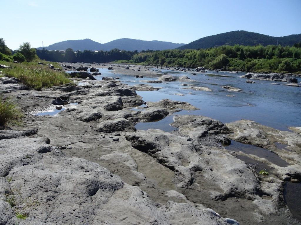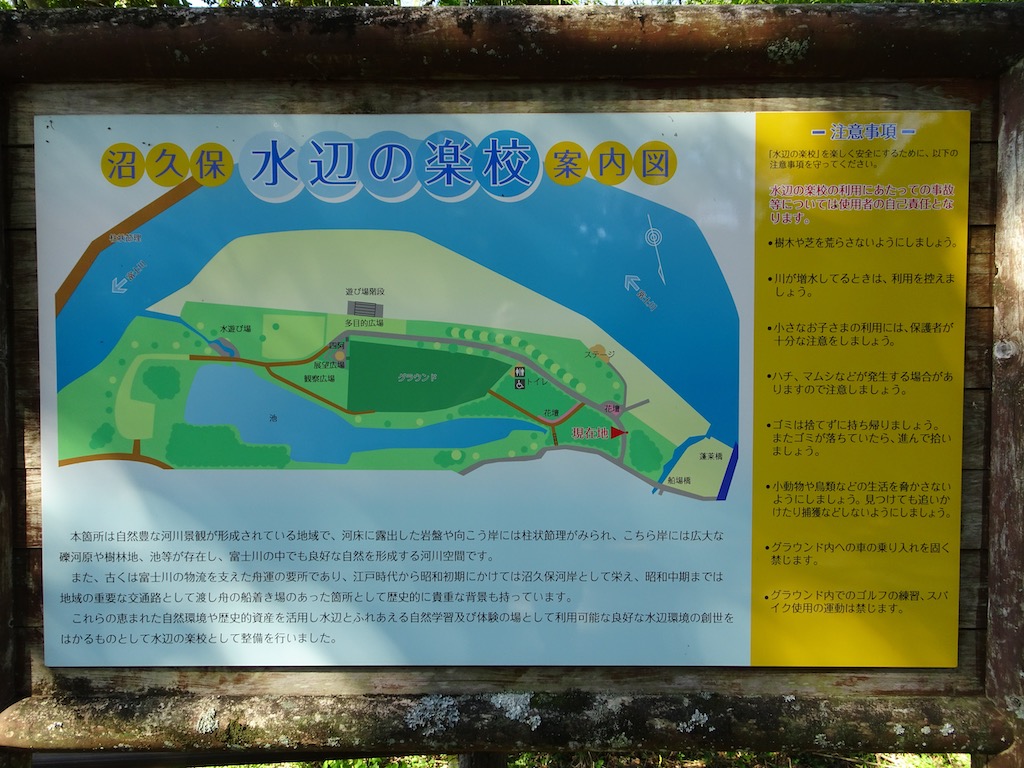 駐車場手前から富士川の河原に降りることができます。露出した岩盤が広がり、水辺で遊ぶのも良いかと思います。 ロケーションも良いです。