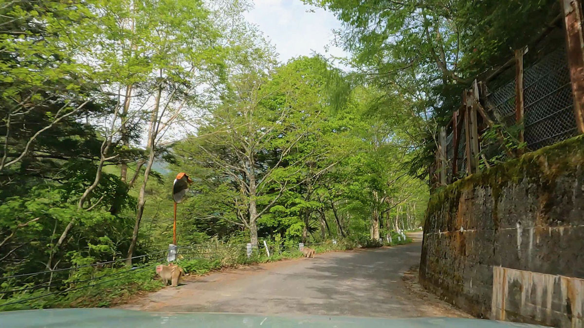 さらに下ると野生の猿が数匹たむろしている。真ん中に跳び出すな!!と思いつつ、慎重に通過する。