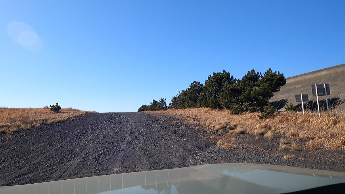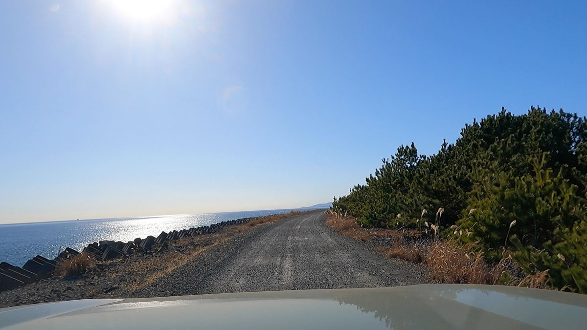 防潮堤からの降り口を過ぎると、路面の窪みが徐々に酷くなり、車体が大きく上下に揺さぶられる。