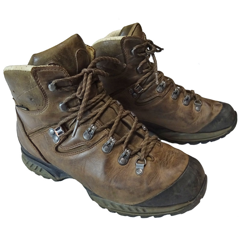 ソールの形状(写真右)が全く変わっていて、サイドのプロテクターが高くなり、岩でキズついた革の表面がほぼ覆い隠されている。最初からこの形になぜしなかったのか。