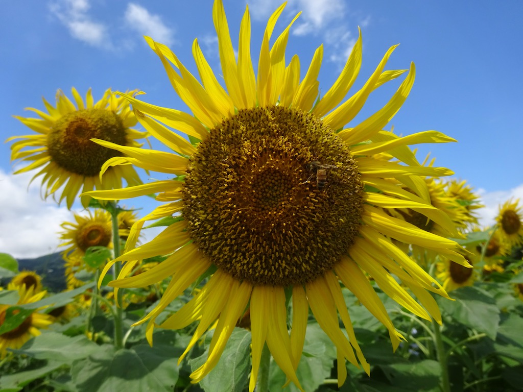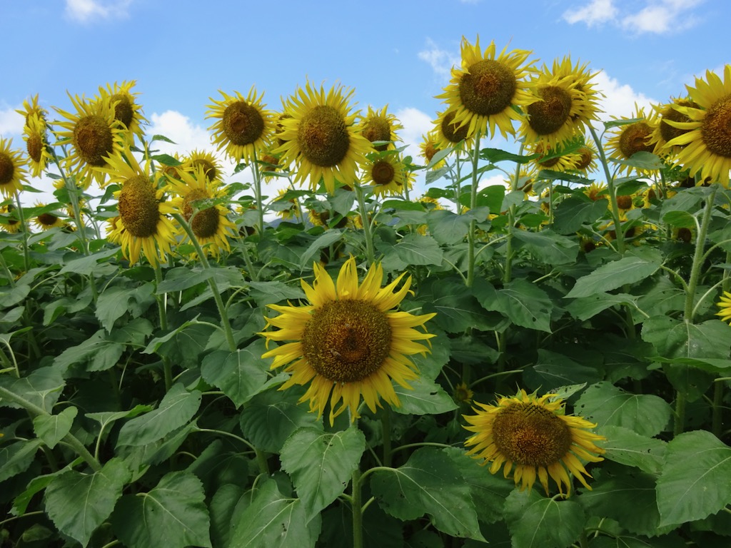 やっと戻り梅雨(!?)の終わりが見え、不安定ながら青空の広がる日が多くなってきた。夏と言えばひまわり!!ネットを探ると、東部のひまわりスポットだけでも6箇所も出てきた。