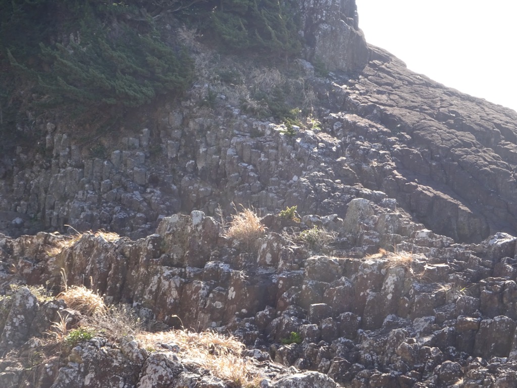 海岸線まで降りると、俵礒(柱状節理)を間近に見ることができた。灯台から見えた柱状節理の裏側になる。